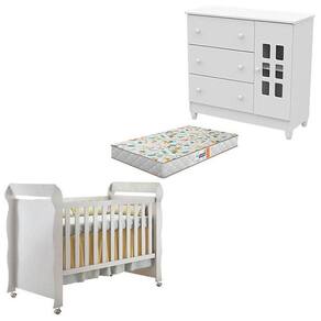 Berço Americano Mirelle e Cômoda Mariah Branco Brilho com Colchão Gazin Carolina