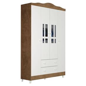 Guarda Roupa Infantil Ariel 4 Portas Branco Acetinado Amadeirado - Carolina Móveis