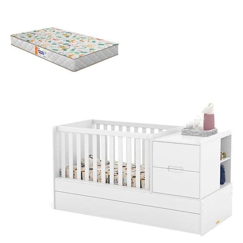 Berço Americano Multifuncional Formare Branco Acetinado com Colchão Gazin Matic