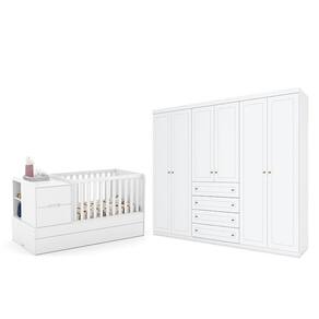 Berço Americano Multifuncional Formare Branco Acetinado – Matic e Guarda Roupa Casal Americano 6 Portas Branco HP - Henn