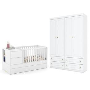 Berço Americano Multifuncional Formare Branco Acetinado – Matic e Guarda Roupa Infantil Americano 4 Porta Branco HP - Henn