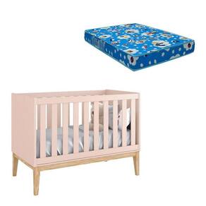 Berço Americano New Classic Rosa com Pés Madeira Natural e Colchão Ortobom Reller