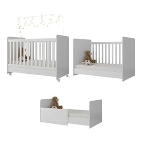 O Berço Americano 3x1 com Colchão, Poltrona Amamentação e Puff Bambino Multimóveis MP4101 foi criado para complementar o quartinho, facilitando a vida da mamãe nos preparativos para a chegada do bebê. O berço é padrão americano (tamanho do colchão 130cm x 70cm) e se transforma em sofá e minicama, o que possibilita ser utilizado por mais tempo. Produzido em MDP com acabamento em pintura UV e Laca PU, que garante maior durabilidade e resistência, o lastro possui 3 regulagens de altura para o colchão e acompanha suporte para mosquiteiro, que garante noites mais tranquilas de sono. A grade Soft (PVC) é produzida de maneira ecologicamente correta, com matéria-prima livre de metais pesados, atóxica e com proteção antiamarelamento. Berço certificado pelo INMETRO sob o Selo n 005770/2018. O Colchão D18 (suporta 50kg), que acompanha o berço, é produzido 100% em tecido poliéster com preenchimento em espuma. Possui tratamento anti-ácaro e anti-alérgico e é indicado para crianças de até 3 anos. A poltrona de amamentação é produzida em madeira de eucalipto, com revestimento em tecido veludo, molas reforçadas e mecanismo de balanço, proporcionando muito aconchego. Capaz de suportar 110kg, o assento possui densidade D23, que garante maior conforto e durabilidade. Já o puff possibilita o descanso das pernas e dos pés tornando esse momento ainda mais confortável.