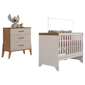 Berço Americano Retro Maya com Cômoda Gaveteiro Emilly Off White Carvalho - Canaã