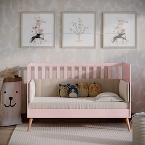 Berço Americano Retrô Vira Mini Cama Com Grade Removível Rosa