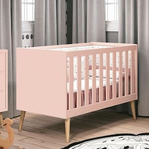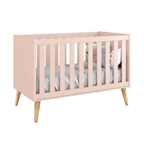 Berço Americano Theo Rosa com Pés Madeira Natural - Reller