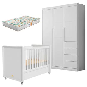 Berço Americano Tutto New e Guarda Roupa Infantil Eloá Branco Acetinado com Colchão Gazin – Phoenix Baby