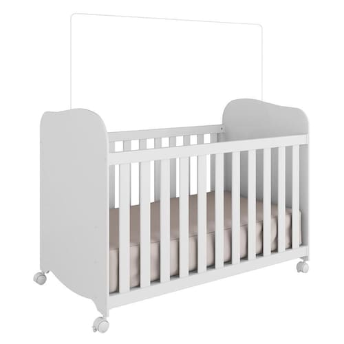 ESPECIFICAÇÕES: Estrutura em MDF Pintura UV atóxica Certificado pelo INMETRO 001950/2019 Padrão americano 3 Regulagens de altura do estrado Bordas arredondadas e laqueadas Grades fixas 4 Rodízios sendo 2 com trava e 2 sem trava Suporta até 40kg Acompanha suporte mosquiteiro Colchão recomendado 130 x 70 cm Não acompanha colchão Não possui a opção de montagem como mini cama