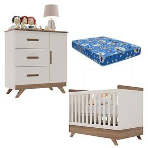 Berço Americano Vitória e Cômoda Retro Maya Off White Carvalho com Colchão Ortobom Canaã