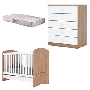 Berço Bala de Menta e Cômoda Infantil Pique-Esconde Rústico Branco com Colchão Gazin Henn