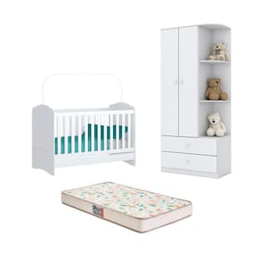 Berço Bala de Menta e Guarda Roupa Labirinto Branco + Colchão
