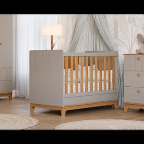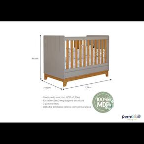 Berço Bebe Americano 3x1 MDF Dorabelly Bis Com Colchão - Cinza Claro