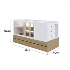 O(a) Berço Bebê Multifuncional 3 Gavetas com Cama Auxiliar Aveiro Oak/Branco - Completa Móveis é produzido em MDP na escala de brilho Fosco, e possui um grau de dificuldade de montagem: Médio.