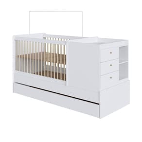 Berço Cama Multifuncional com Auxiliar 2 Colchões Branco. O Berço Cama Multifuncional com Auxiliar da Completa Móveis é versátil, prático e elegante, com características que o destacam e literalmente o tornam multifuncional. Inicialmente, utilizado como berço cômoda trocador na parte lateral. Após o passar do tempo, pode ser desmembrado e utilizado como cama de solteiro cômoda avulsa ou mesa de cabeceira. Cama auxiliar possibilitando mais um opcional extra pra dormir! Grades em Pinus, trazendo leveza e um toque diferenciado no design. Produzido em MDP e entregue desmontado. Acompanha Dois Colchões de Solteiro 78cm x 188cm Colchão para Berço 70cm x 130cm. Ean: 7909903415948