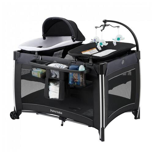 Berço Cercado multifuncional para bebês Os berços versáteis Pamo Babe atendem às suas muitas necessidades e acompanham o crescimento do seu filho. Parque de viagem multifuncional para bebês, combinado com berço, trocador, brinquedos fofos e centro de atividades.