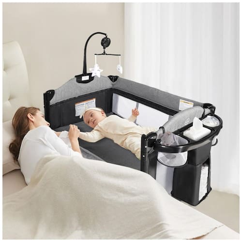 Com design de malha lateral, o berço garante circulação de ar e permite que os pais monitorem o bebê com facilidade. A entrada lateral com zíper facilita a entrada e saída do bebê, e o colchão removível proporciona conforto. Além disso, brinquedos pendurados adicionam diversão ao espaço de brincadeira.