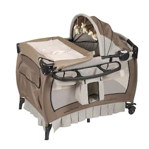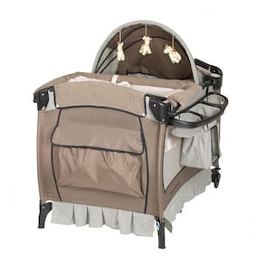 Berço Cercado Portátil com Controle de Volume, Luz Noturna e Vibração, Baby Trend, Marrom