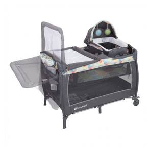 Detalhes: 100 Poliéster Importado Napper aconchegante com dossel e 2 brinquedos de pelúcia Vire o trocador Berço completo removível Mecanismo de travamento com uma mão Duas rodas grandes com freios para maior segurança Dobragem compacta fácil Bolsa de viagem, zenamento