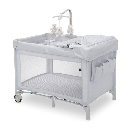Berço Cercado Portátil com Trocador Removível e Três Ursos Brannan de Pelúcia, Delta Children, Cinza