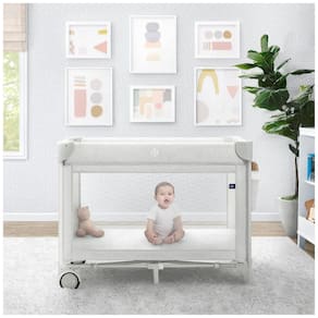 Certificada pela JPMA para atender ou exceder todos os padrões de segurança estabelecidos pela CPSC e ASTM. As laterais de malha proporcionam fluxo de ar e visão clara do bebê. Fácil, sem montagem de ferramentas