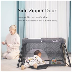 Laterais feitas de tecido de malha macio e arejado, permitindo que os pais vejam o bebê facilmente. Porta com zíper para uma colocação suave do bebê ou facilitar a entrada e saída. Montagem Rápida e Sem Desmontagem: