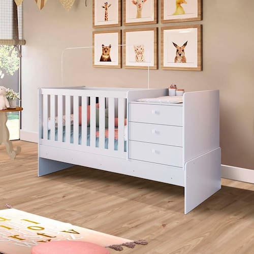 O Berço Multifuncional sem Auxiliar é versátil e elegante, com características que destacam o berço. Quando montado em berço contém uma mini cômoda e apoio para o trocador. é possível, também, ser transformado em uma cama solteiro, que é perfeita para quando seu bebê estiver crescidinho. Produto certificado pelo INMETRO.
