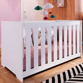 Berço Infantil certificado pelo INMETRO n 000772/2022, além de ser um produto versátil e multifuncional, conta com um design lindo e sofisticado, deixando o ambiente ainda mais moderno e aconchegante. Estrutura em MDP de 15 mm, feito com material ecologicamente correto, para melhor durabilidade e resistência à peça, e excelente acabamento em Finish Foil (Fosco). Composto por estrado em MDF de 6 mm com altura regulável em três opções: 1: 9 cm 2: 23 cm e 3: 38 cm, travessas em MDF de 15 mm, grades fixas em MDF 12 mm, com espaço entre elas de 5,5 cm e acabamento em BP, acompanha suporte para mosqueteiro. O colchão indicado é de 130x60 cm (Não Acompanha Colchão). Suporta até 30 kg distribuídos. Este móvel chegará em sua casa separado em 01 volume.
