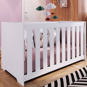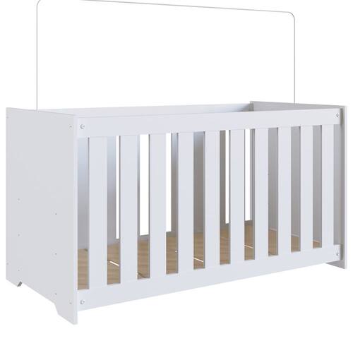 Berço Infantil certificado pelo INMETRO n° 000772/2022, além de ser um produto versátil e multifuncional, conta com um design lindo e sofisticado, deixando o ambiente ainda mais moderno e aconchegante. Estrutura em MDP de 15 mm, feito com material ecologicamente correto, para melhor durabilidade e resistência à peça, e excelente acabamento em Finish Foil (Fosco). Composto por estrado em MDF de 6 mm com altura regulável em três opções: 1ª: 9 cm 2ª: 23 cm e 3ª: 38 cm, travessas em MDF de 15 mm, grades fixas em MDF 12 mm, com espaço entre elas de 5,5 cm e acabamento em BP, acompanha suporte para mosquiteiro. O colchão indicado é de 130x60 cm (Não Acompanha Colchão). Suporta até 30 kg distribuídos. Este móvel chegará em sua casa separado em 01 volume.