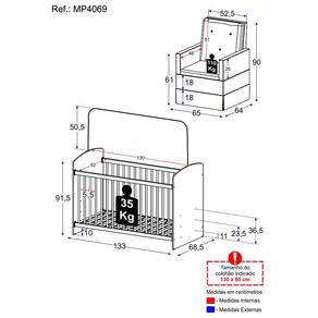 Dimensões do produto montado: Berço - Altura: 91,5cm | Largura: 133cm | Profundidade: 68,5cm Poltrona - Altura: 90cm | Largura: 65cm | Profundidade: 64cm *Você pode consultar as medidas detalhadas na imagem técnica do produto.
