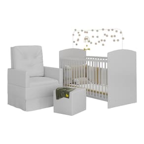 Conteúdo da Embalagem: 1 (um) Berço 1 (uma) Poltrona 1 (um) Puff Kit Ferragem Manual de Montagem