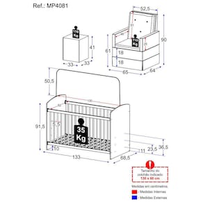 Dimensões do produto montado: Berço - Altura: 91,5cm | Largura: 133cm | Profundidade: 68,5cm Poltrona - Altura: 90cm | Largura: 65cm | Profundidade: 64cm Puff - Altura: 41cm | Largura: 33cm | Profundidade: 33cm *Você pode consultar as medidas detalhadas na imagem técnica do produto.
