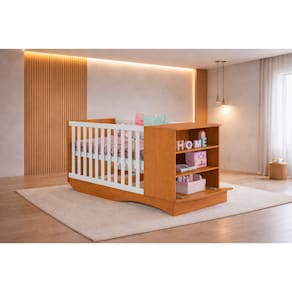 Berço com que vira Cama com Prateleira Celinne- MobiBaby