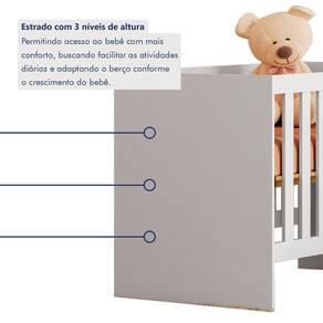 Vale a pena comprar um berço que vira caminha? Sim! É uma ótima opção para quando o bebê já está mais independente, mas ainda precisa de uma cama segura e de altura baixa. Acabamento: Pintura UV Acompanha Cama Auxiliar: Não Acompanha Móbile: Não Acompanha Suporte para Mosquiteiro: Sim - Sem Véu Altura: 89 cm Altura do Estrado até o Chão: 45 cm Ambiente Principal: Quarto de Bebê Certificado: OCAN-BER.278/19-3 codigo_ean: 7900288083012 Complexidade da Montagem: Média: pode ser montado por mais de uma pessoa e/ou necessite de maior conhecimento para montagem Cor: Branco Cor do Produto: Branco Escala de Brilho: Acetinado Estilo: Clássico Estrado com Regulagem de Altura: Sim Estrado Regulável em Quantas Posições: 03 Informações Complementares: Travessão em MDF 25mm e ripas em MDF 6mm. Itens Inclusos: 1 Berço, 1 Manual de Montagem, 1 Kit Ferragem Largura: 72,5 cm Linha ou Coleção: Americano Manual de Montagem e Instalação: https://cdn2.madeiramadeira.com.br/atributo/tigus-baby/2719884-732-17407457338299.pdf Marca: Tigus Baby Material da Grade: MDF Material do Estrado: MDF Material Principal: MDF Multifunção Flex: Não Necessita Montagem: Sim Opções de Altura do Estrado: 3 Origem do Produto: Nacional Permite a Utilização de Cama Auxiliar: Não Peso: 23,9 kg Pintura Atóxica: Sim Portátil: Não Possui Gavetas: Não Possui Pés: Não Possui Portas: Não Possui Prateleiras: Não Profundidade: 132,4 cm Recomendações de Uso, Manutenção e Limpeza: Não utilizar produtos químicos. Não utilizar produtos abrasivos. Não molhar. Utilizar pano macio e seco ou levemente umedecido. Sistema Anti-Refluxo: Não Sistema de Montagem: Parafusos auto-atarrachantes, cavilhas e buchas internacionais. Suporta Até (kg): 30 kg Tamanho do Colchão Indicado (L x C): 130 x 70 x 10 Tipo de Berço: Berço Americano Tipo de Estrado: Removível Tipo de Grade: Móvel