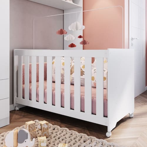 Berco com Rodizios Aconchego Completa Moveis, e a combinacao perfeita de versatilidade, funcionalidade e elegancia para o quarto do bebe. Com tres niveis de regulagem de altura do colchao, ele se adapta ao crescimento da crianca e oferece mais conforto e comodidade para os pais no dia a dia. Seu design funcional aliado a mobilidade dos rodizios. Alem disso, e um produto certificado pelo INMETRO, garantindo seguranca e qualidade para sua familia.