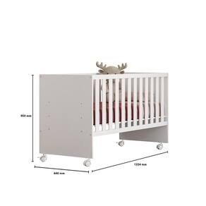 Características Possui certificação compulsória de acordo com as portarias do Inmetro Nº Registro Inmetro: 001 881/2020 panfletos tabloides e outras mídias comerciais. Demais regras e atualizações vide Berço padrão nacional: -60cm- Estrado em MDF com chapas de 6mm Travessas do estrado em MDF com chapas de 25mm Grade em MDF com pintura atóxica e livre de materiais pesados Produto com três regulagens de altura do estrado: 1a: 360 milímetros, 2a: 488 milímetros, 3a: 616 milímetros -altura do estrado em relação a borda superior da grade-. Possibilita que conforme o crescimento do bebê, mais profundo fica o berço Altura do chão até a base -variação de acordo com o posicionamento do estrado-: 1a: 540 milímetros, 2a: 412 milímetros, 3a 284 milímetros Acabamento revestido em pintura UV Acompanha suporte para mosquiteiro Acompanha kit de rodízios -2 c/travas e 2 s/travas-, que garantem ao produto mais mobilidade e segurança Indicação de colchão : 60x130cm
