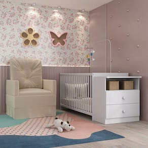 O Berço Cômoda com Colchão Incluso e Poltrona de Amamentação Meu Bebê Multimóveis MP4090 foi criado para complementar o quartinho, facilitando a vida da mamãe nos preparativos para a chegada do bebê. O berço é padrão nacional (tamanho do colchão 130cm x 60cm), produzido em MDP com acabamento acetinado (cerca de 20% de brilho), que garante maior durabilidade e facilidade na limpeza. A cômoda acoplada (não é possível montar separadamente) possui 2 gavetas espaçosas com corrediças metálicas, que proporcionam mais leveza no manuseio e um nicho para deixar o quartinho organizado. O lastro possui 3 regulagens de altura para o colchão e acompanha suporte para mosquiteiro, que garante noites mais tranquilas de sono. Berço Certificado pelo INMETRO sob o Selo n 012251/2022. O Colchão D18 (suporta 50kg), que acompanha o berço, é produzido 100% em tecido poliéster com preenchimento em espuma. Possui tratamento anti-ácaro e anti-alérgico e é indicado para crianças de até 3 anos. A poltrona de amamentação é produzida em madeira de eucalipto, com revestimento em tecido veludo, molas reforçadas e mecanismo de balanço, proporcionando muito aconchego. Capaz de suportar 110kg, o assento possui densidade D23, que garante maior conforto e durabilidade.