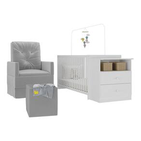 Conteúdo da Embalagem: 1 (um) Berço 1 (um) Colchão 1 (uma) Poltrona 1 (um) Puff Kit Ferragem Manual de Montagem
