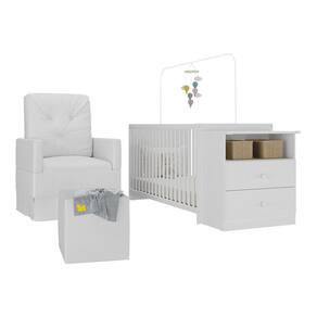 Conteúdo da Embalagem: 1 (um) Berço 1 (uma) Poltrona 1 (um) Puff Kit Ferragem Manual de Montagem