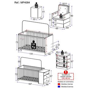 Dimensões do produto montado: Berço - Altura: 73cm | Largura: 166cm | Profundidade: 68cm Poltrona - Altura: 90cm | Largura: 65cm | Profundidade: 64cm Puff - Altura: 41cm | Largura: 33cm | Profundidade: 33cm *Você pode consultar as medidas detalhadas na imagem técnica do produto.