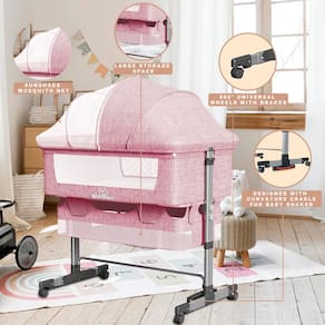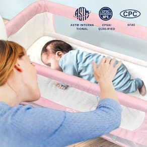 Nosso berço de cabeceira é projetado para acomodar bebês de até 9 kg e pode ser utilizado como um berço independente ou como um dorminhoco lateral ao lado da cama dos pais. A segurança é nossa prioridade e este produto foi testado em laboratório em um laboratório certificado nos EUA e atende a todas as normas de segurança dos EUA. Este berço facilita a vida como um novo pai! Possui quatro bolsos de armazenamento para manter os itens essenciais à mão para as mamadas no meio da noite e vem com um lençol lavável e uma capa de colchão à prova d'água que pode ser limpa facilmente. A altura é facilmente ajustável para caber em camas com uma altura superior do colchão variando de 58,4 a 78,7 cm: Basta medir do chão até o topo do seu colchão e se a altura da sua cama se encaixar nessa faixa, este berço pode funcionar para você como um dorminhoco de cabeceira. A moldura estável e flexível é projetada para ceder ligeiramente ao movimento dos pais para que você possa facilmente "sacudir" seu bebê para dormir.