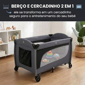 Destaques do Produto: Função Balanço: Pés curvados que permitem um balanço suave e relaxante. Entretenimento e Conforto: Inclui móbile com pelúcias macias e uma caixa eletrônica com diversas funções (músicas, luz e vibração). Proteção Total: Capota ajustável com mosquiteiro integrado, protegendo o bebê de insetos e da claridade excessiva. Praticidade no Transporte: Sistema de fechamento compacto com base levantada, rodas para movimentação e bolsa para transporte inclusa. Montagem Inteligente: Sistema de montagem manual que dispensa o uso de ferramentas.