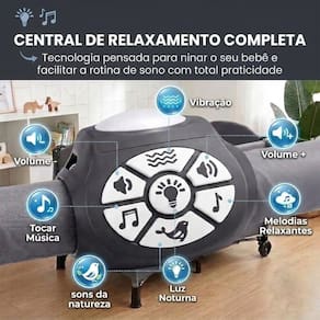 O grande diferencial deste modelo é a sua barra de balanço, que permite ninar o bebê com movimentos suaves, garantindo um sono mais tranquilo. Além disso, acompanha uma caixa multifuncional com som, luz e vibração, ideal para acalmar os pequenos nos momentos de agitação.