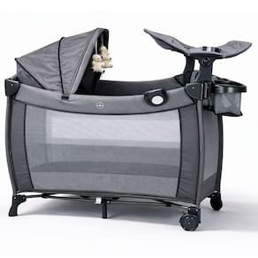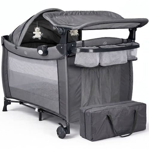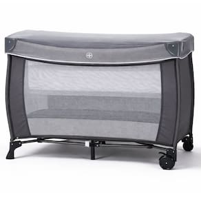 Berço de Bebê Portátil Zooper Cinza com Trocador Mosquiteiro Bolsa e Caixa Musical Som e Luz Dobrável Desmontável
