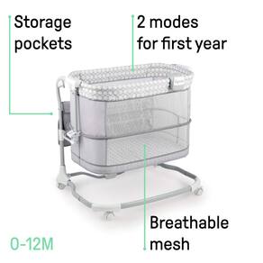 Ingenuity Berço de cabeceira Dream & Grow Berço de 2 modos 0-12 meses, altura ajustável - Dalton (cinza)
