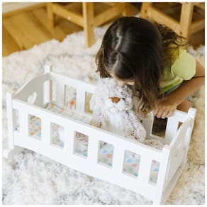 Este berço de balanço é perfeito para as crianças dormirem com suas bonecas e bichos de pelúcia favoritos. Feito de madeira realista e de estilo clássico, o berço é durável e pode acomodar bonecas de até 50 centímetros de altura. Com uma altura de cerca de 25 centímetros, o berço possui instruções claras para fácil montagem com apenas uma chave de fenda não incluída. O movimento de balanço suave proporciona uma experiência relaxante para a criança e suas bonecas. O berço também vem com um colchão removível e aconchegante. Ele coordena perfeitamente com outros móveis da linha Mine to Love, como a cama de brincar, o beliche de brincar, o armário de brincar, o carrinho de brincar e a cadeira alta de brincar. Além disso, incentiva a empatia e ajuda as crianças a se expressarem enquanto exploram os papéis e responsabilidades dos adultos. É um ótimo presente para crianças em idade pré escolar, de 3 a 5 anos, para brincadeiras práticas e sem tela.