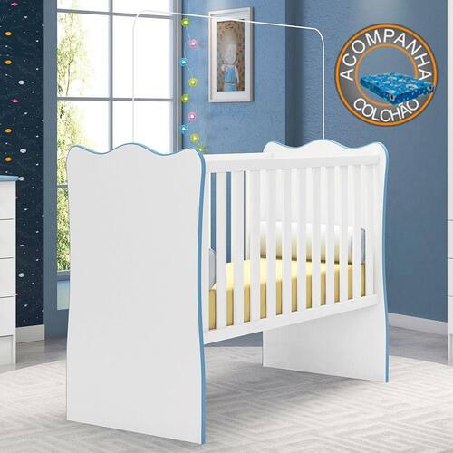 Características: Estrutura em MDP Acabamento em Pintura UV Atóxica Estrado com 3 Opções de Altura Suporte para mosquiteiro, incluso no produto Bordas arredondadas com acabamento em perfil PVC Suporta até 40 kg Ideal para colchão de 130 x 60 cm ACOMPANHA COLCHÃO