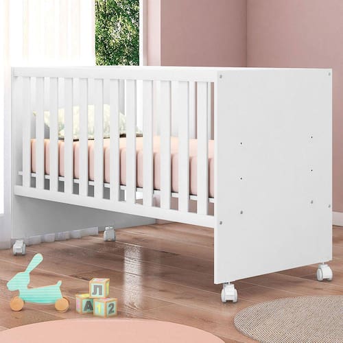 O(a) Berço Doce Sonho com Rodízio Branco - Qmovi é produzido em MDF e MDP na escala de brilho Semi-Brilho, e possui um grau de dificuldade de montagem: Médio.