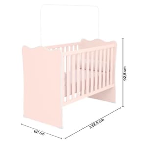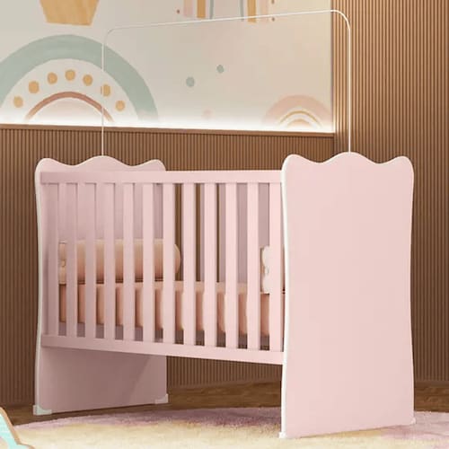 O(a) Berço Doce Sonho com Mosquiteiro Rosa Acetinado - Qmovi é produzido em MDP na escala de brilho Fosco, e possui um grau de dificuldade de montagem: Médio. Seu revestimento/acabamento é: Pintura UV.