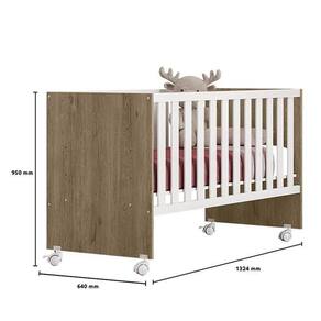 Berço Doce Sonho Reto Carvalho/branco Com Rodízios - Qmovi Carvalho/branco Berço Doce Sonho Reto com Rodízios - Qmovi O Berço Doce Sonho Reto foi feito para proporcionar ao bebê mais segurança e aconchego durante o sono. Com um design minimalista, ele completa o ambiente com estilo e modernidade. Acompanha suporte para mosquiteiro, que permite noites mais tranquilas. ESPECIFICAÇÕES: - Estrutura em MDP - Pintura UV - Certificado compulsório do INMETRO 001 881/2020 - Padrão - Estrado em MDF de 6mm - Estrado regulável em três alturas: 1: 36 cm, 2: 48,8 cm, 3: 61,6 cm (altura do estrado em relação a borda superior da grade) - Travessas do estrado em MDF com chapas de 25mm - Grade em MDF - Acompanha suporte para mosquiteiro - 4 Rodízios sendo 2 com travas e 2 sem travas - Colchão recomendado 60 x 130 cm - Não acompanha colchão