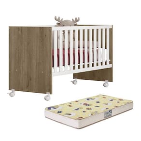 Berço Doce Sonho Reto com Rodízios e Colchão Supreme - Qmovi - Marrom